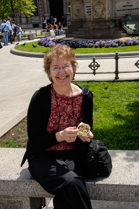 Kathy eating her first gelato on this trip