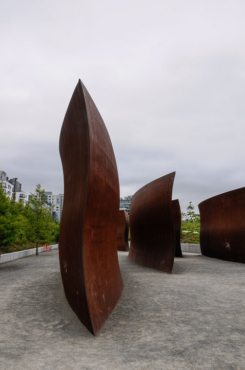 'Wake' (2004, 10 plates, 5 sets of locked toroid forms, weatherproof steel) - Richard Serra