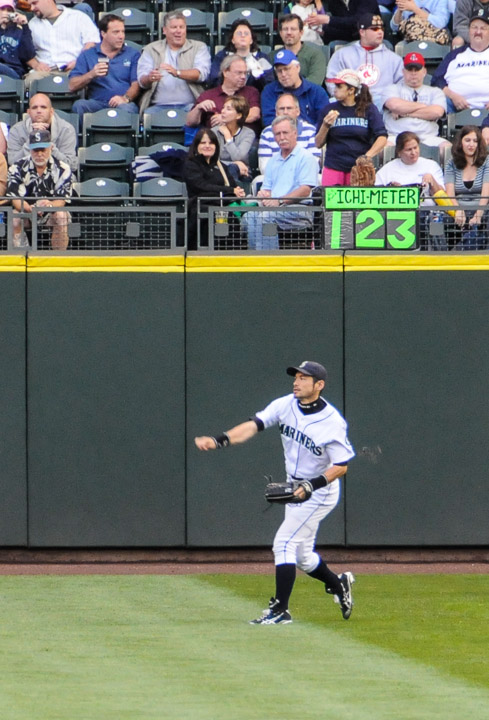 Ichiro warming up in Right Field