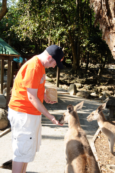 Brian feeding kangaroos in the Habitat