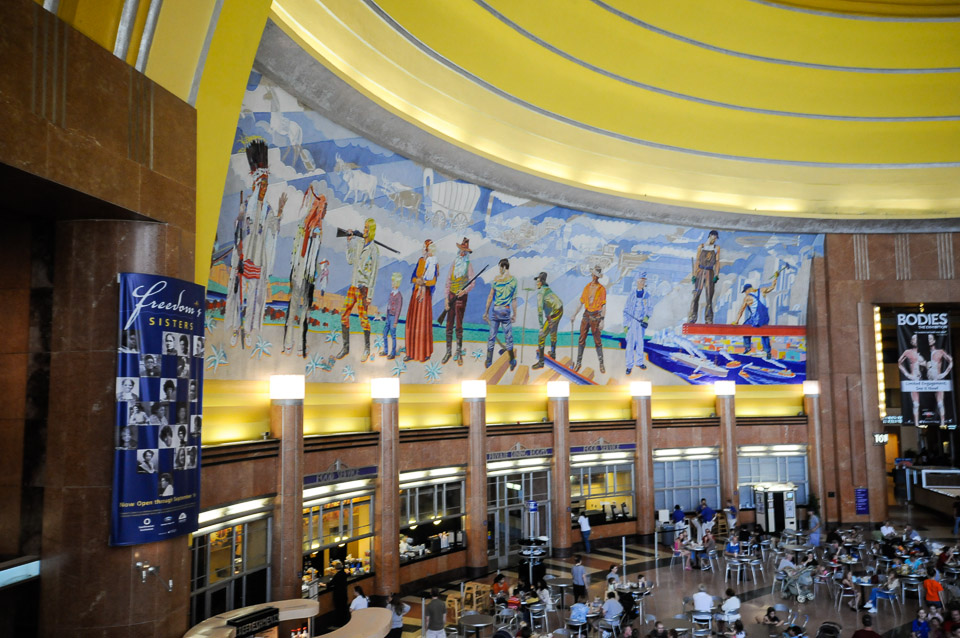 Cincinnati's Art Deco Union Terminal - 1933, Architecture firm: New York's Fellheimer and Wagner, Art Deco elements: French Architect Paul Cret, Murals: German-born Winold Reiss