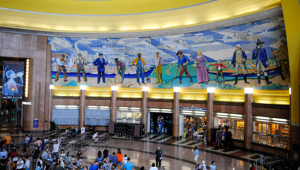 Cincinnati's Art Deco Union Terminal - 1933, Architecture firm: New York's Fellheimer and Wagner, Art Deco elements: French Architect Paul Cret, Murals: German-born Winold Reiss