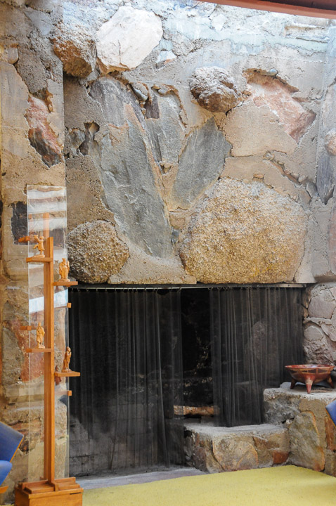 The fireplace in the Living Room at Taliesin West