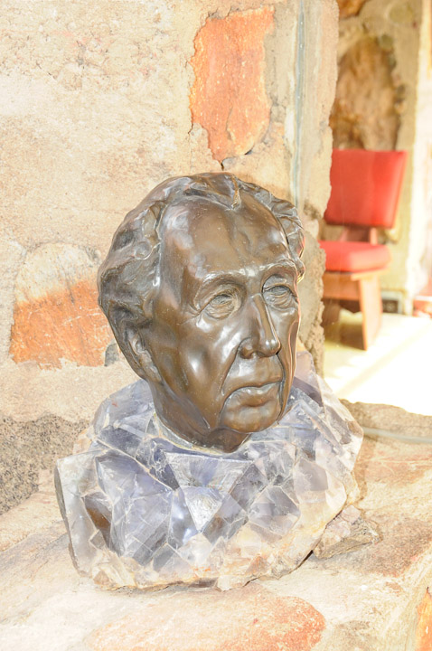A bust of Frank Lloyd Wright, one of many Heloise Crista sculptures on display at Taliesin West. Wright is purported to have given this bust, Crista's first sculpture, his 'highest compliment', his only criticism being that 'maybe my jowls are a little heavy'.