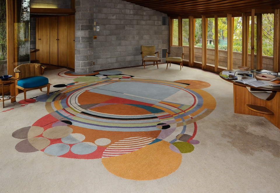 The Great Room with a beautiful carpet designed by Frank Lloyd Wright