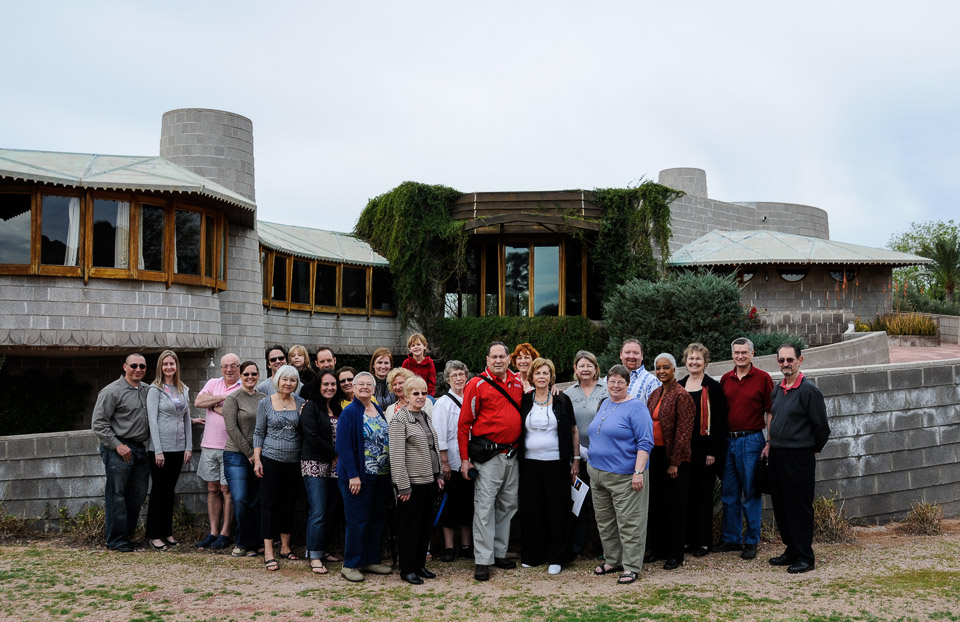 A group photo at the David and Gladys Wright Residence