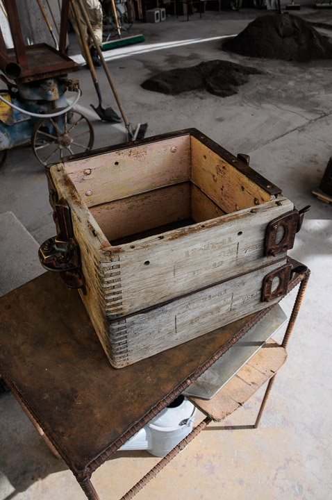 A box used to hold a 'green sand' bell mold at Arcosanti