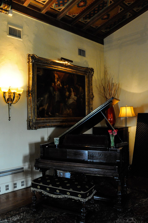 The Steinway reproducing piano in the Living Room of the Wrigley Mansion