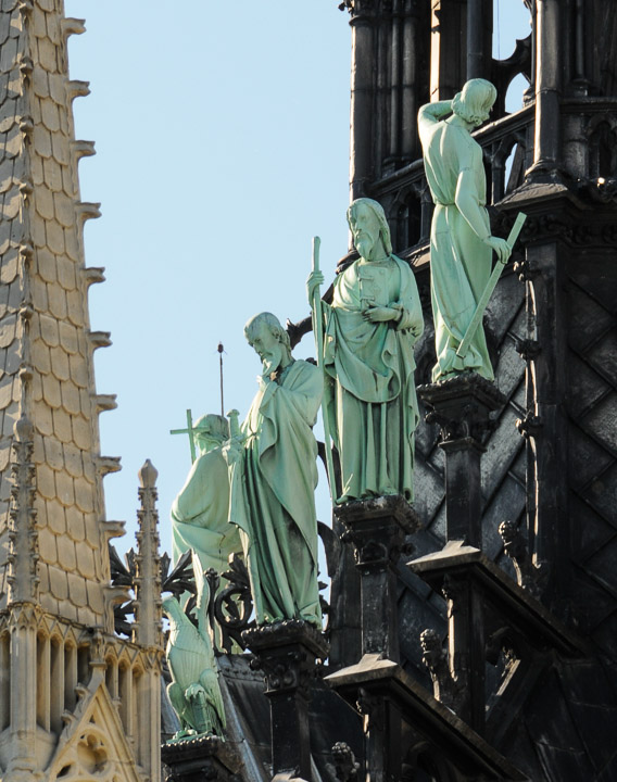 The figure at the right admiring the spire is Viollet-le-Duc, the architect of the 1860 neo-Gothic renovation of the church