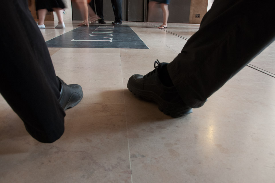 A 'foot shot' in the modern entrance hall to the Louvre
