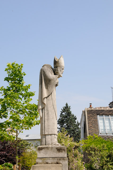Saint Denis, an easily identifiable saint, is always holding his head in his hands. The legend goes that he was beheaded, then picked up his head and walked several miles, the stuff of which sainthood is made. This statue marks where he was beheaded by Roman soldiers.