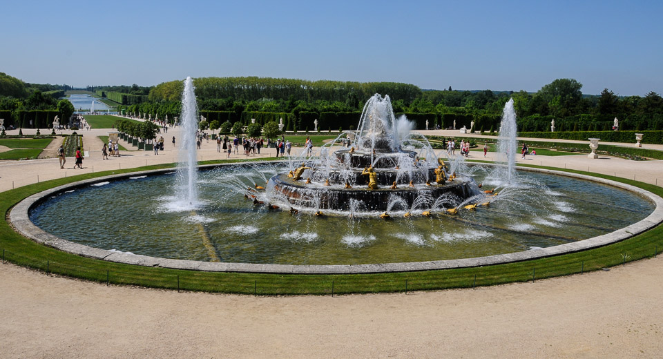 Here is the Latona Basin fountain in action the afternoon of our visit