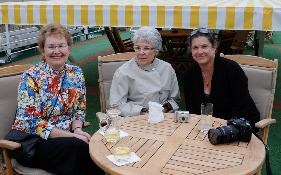 Celebrating our arrival in Paris. Kathryn, Ann Lapchick, Sue Gendron. Ann & Sue are mother & daughter.