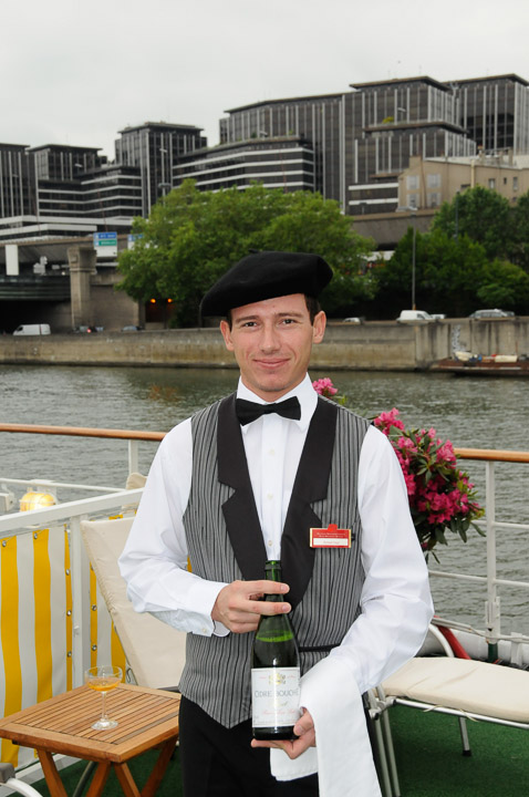 Celebrating our arrival in Paris. Crew member Roland Nagy