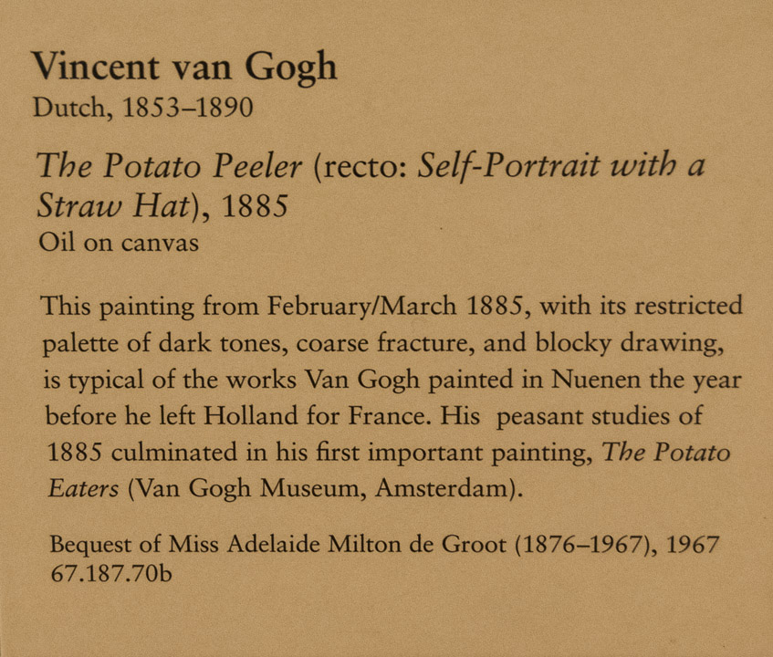 Vincent van Gogh, The Potato Peeler (recto: Self-Portrait with a Straw Hat) - 1885