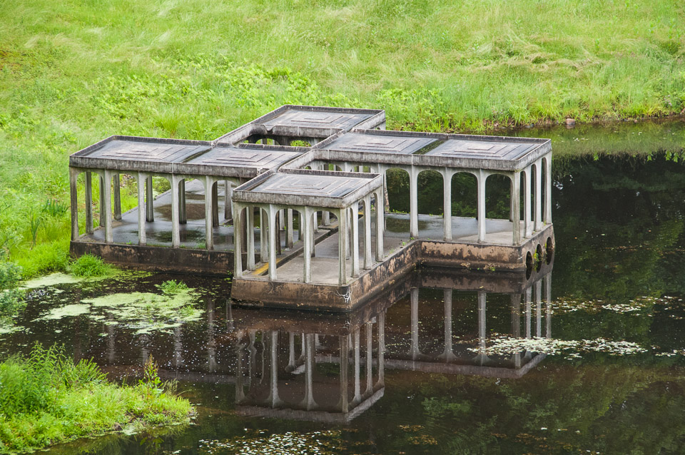 Sculpture and pond