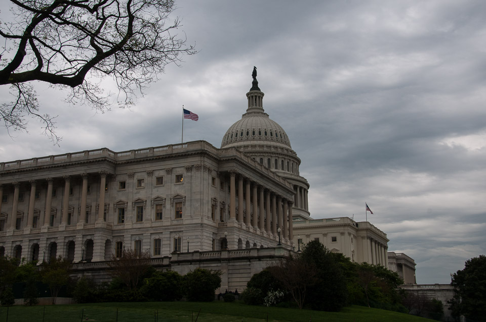 The US Capitol. The flag on the left shows that the Senate is in session.