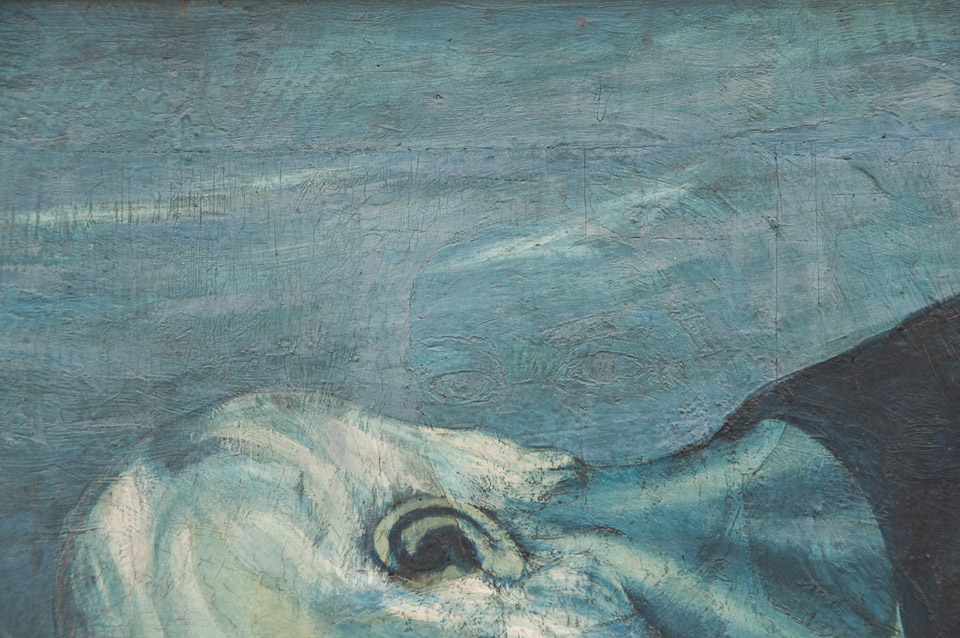 Closer detail of the over-painted woman's face.