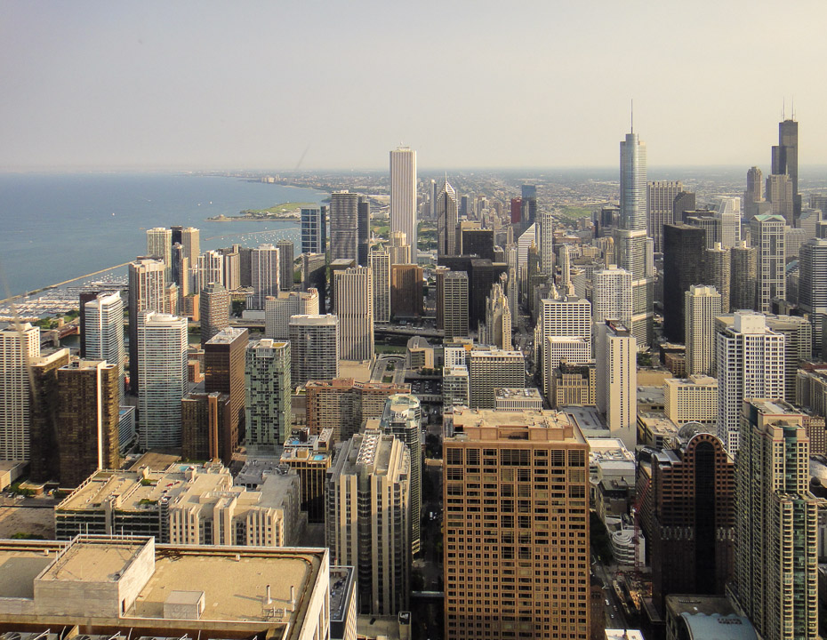 A view from the bar on the top floor of the John Hancock Building