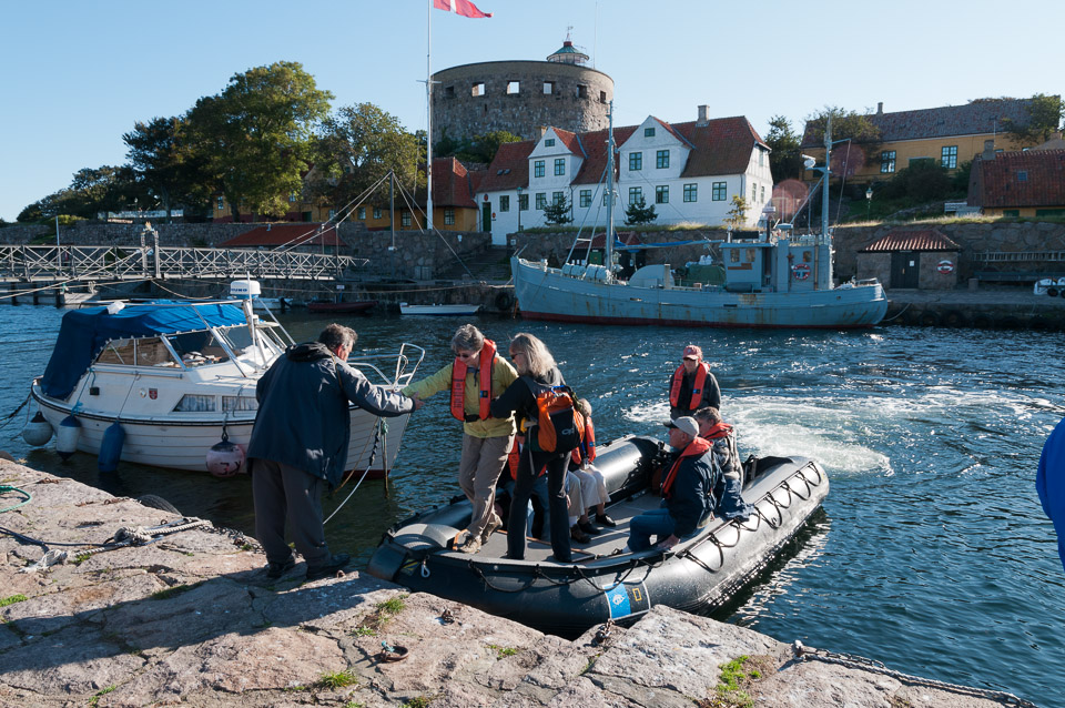 Disembarking on Frederiksø Island, the smaller of the two islands. They are connected by a foot bridge.