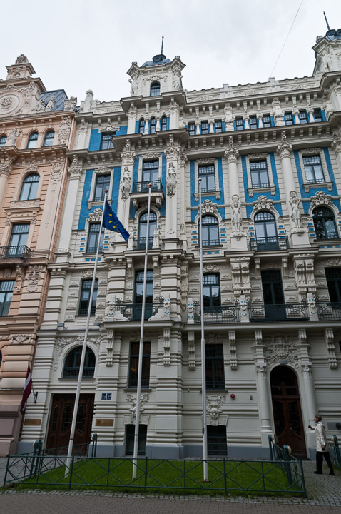 In Riga, Art Nouveau can be split into two main types, decorative and romantic-nationalistic. Most of Riga's Art Nouveau buildings were designed and built by Latvian architects. Many of the buildings in the decorative Art Nouveau style, including the one in this photo, were designed by one of the most famous architects, Mikhail Eisenstein.