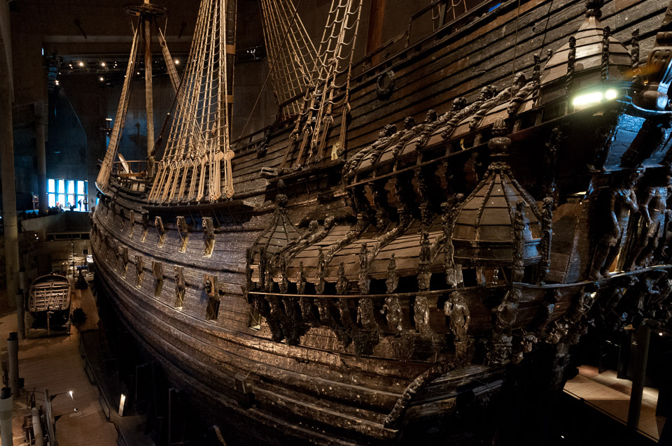 The Vasa Ship was built from 1626-28. It sank in the Stockholm harbor less than a nautical mile into its maiden voyage. Well-preserved in the low salinity waters typical of the Baltic, the wreck was found in 1956 and salvaged in 1961. It owes its poor seaworthiness to the fact that Swedish King Gustavus Adolphus, who commissioned the building of the vessel, meddled too much in its design.