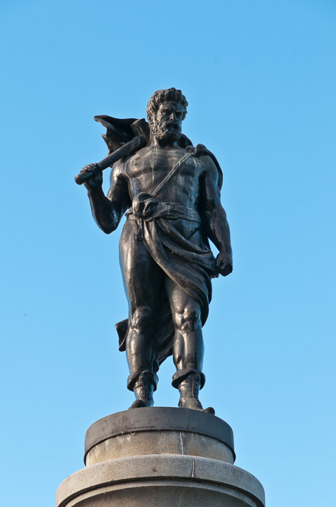 A statue of Thor, sculpted by Rold Adlersparre, on the Djurgården Bridge