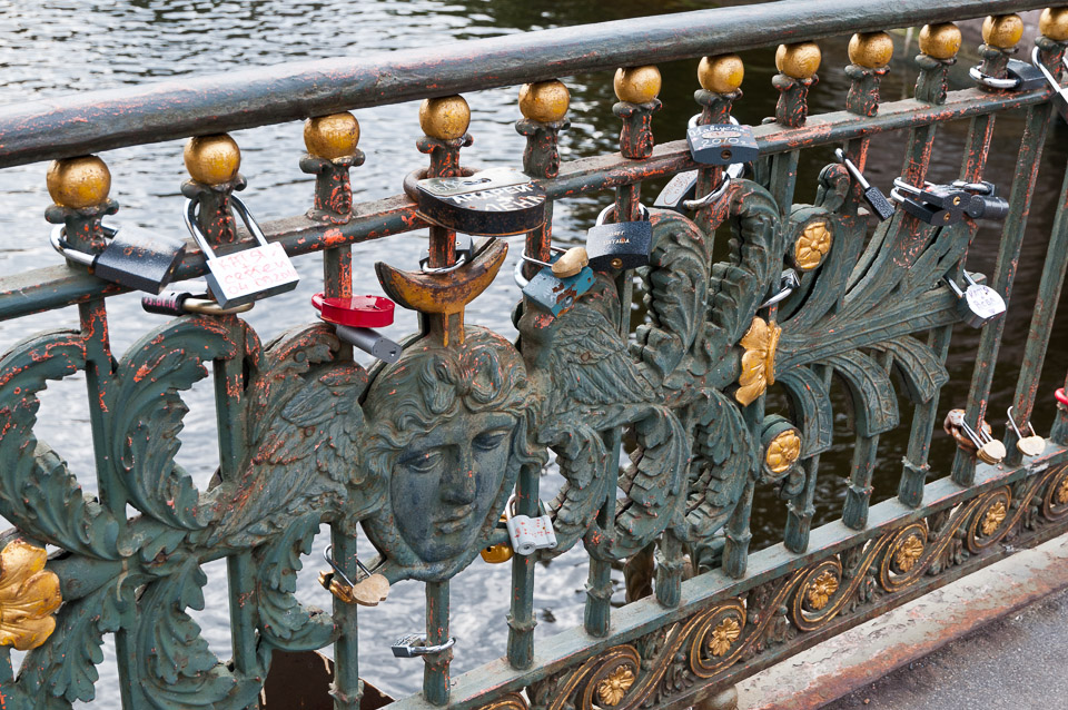 By tradition, when a couple gets married they place a lock on this bridge railing to signify their commitment.
