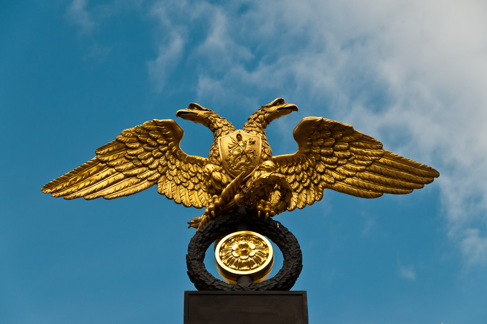 After the fall of Constantinople in 1453, Moscow claimed succession to the legacy of the Eastern Roman Empire. Ivan III married Sophia Palaiologina, the niece of the last Byzantine emperor Constantine XI, and made the Byzantine double-headed eagle his own, and eventually Russian, coat-of-arms. We will see many variations of this symbol in our travels in Russia.
