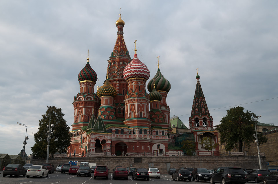 St. Basil's Cathedral on Red Square, Moscow. This view is from the south, just outside of Red Square.
