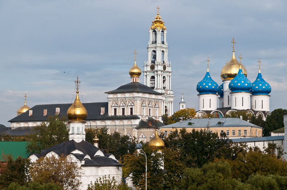 The monastery at Sergiev Posad. 'Posad' is Russian for 'settlement'. So, Sergiev Posad is translated Sergiev's Settlement.