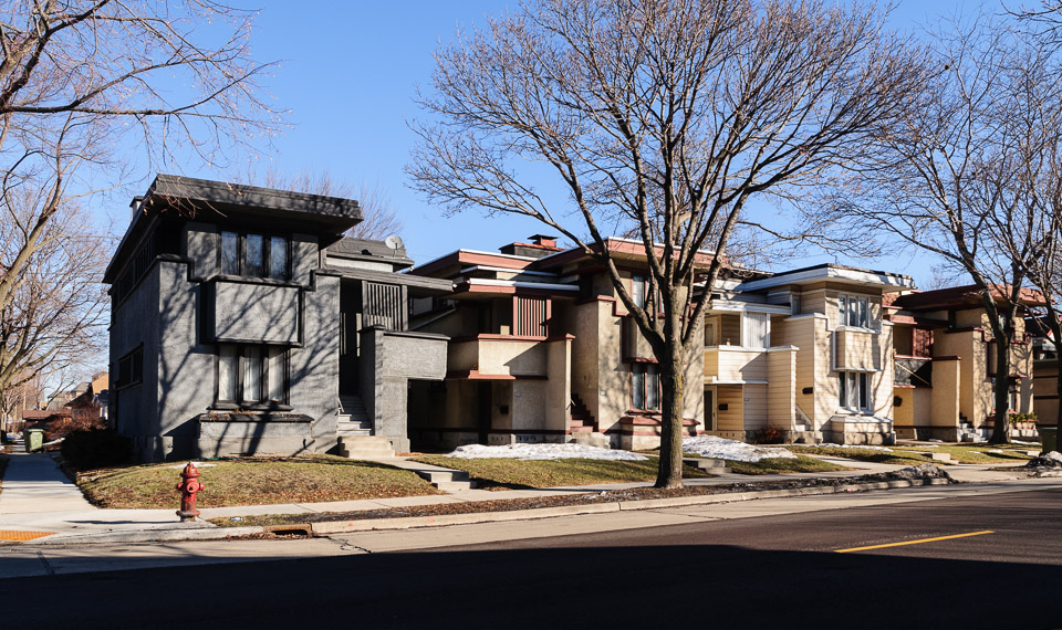 American System Built Duplexes by Frank Lloyd Wright on West Burnham Street. Wright in Wisconsin is working to save this entire block of Wright designs built 1915 to 1916.