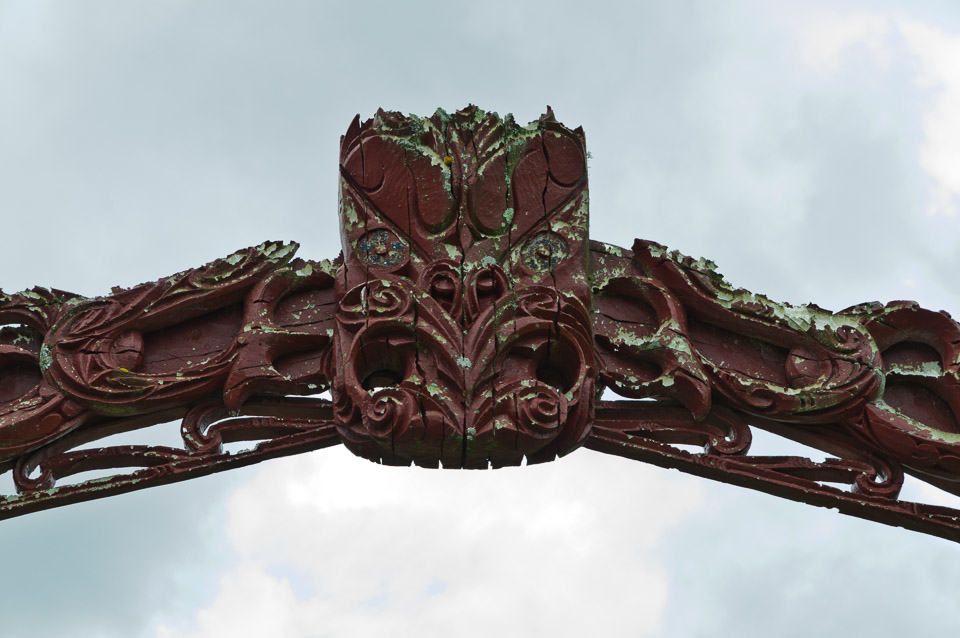 Detail of the top of a Maori gate. We learned that Maori is pronounced 'Mao' (as in Chairman Mao) 'ree'.