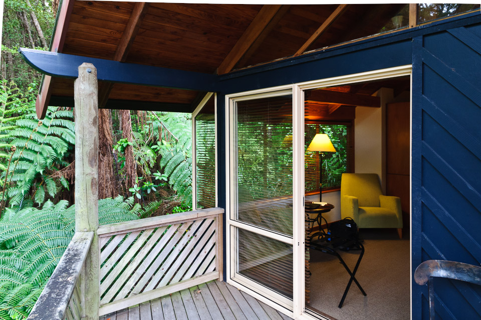 The rooms are in duplex out-buildings, referred to as 'chalets', that are nestled into the forest.