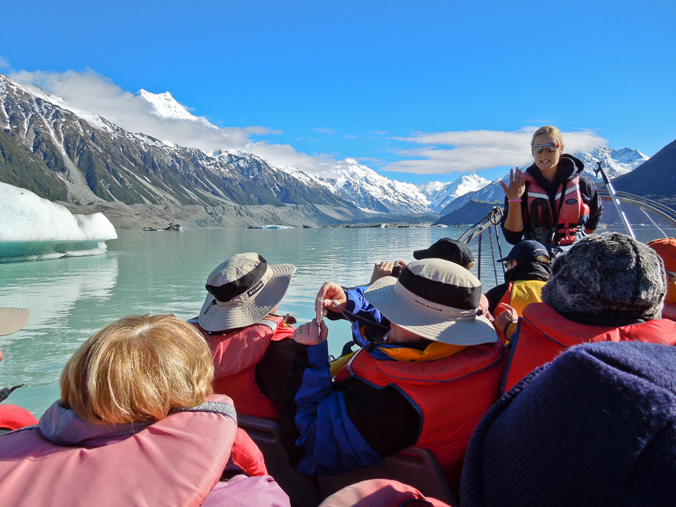 Amelia, our guide, with Mt Cook and the Tasman Glacier in the background