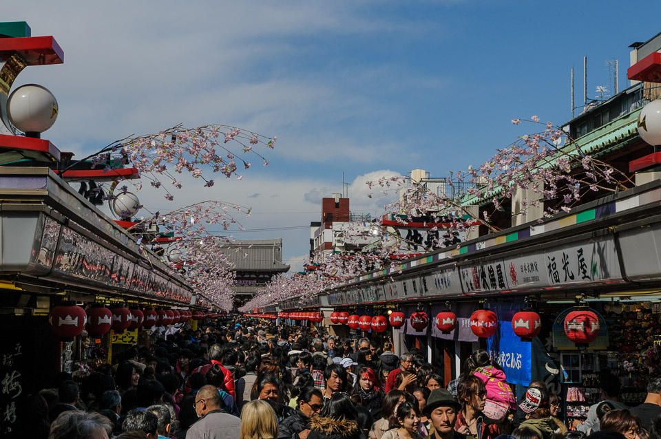 Next we visited Asakusa, the home of Sensoji Temple. The approach to the temple is lined with stands selling food and souvenirs. On this Sunday, many locals were out and about.