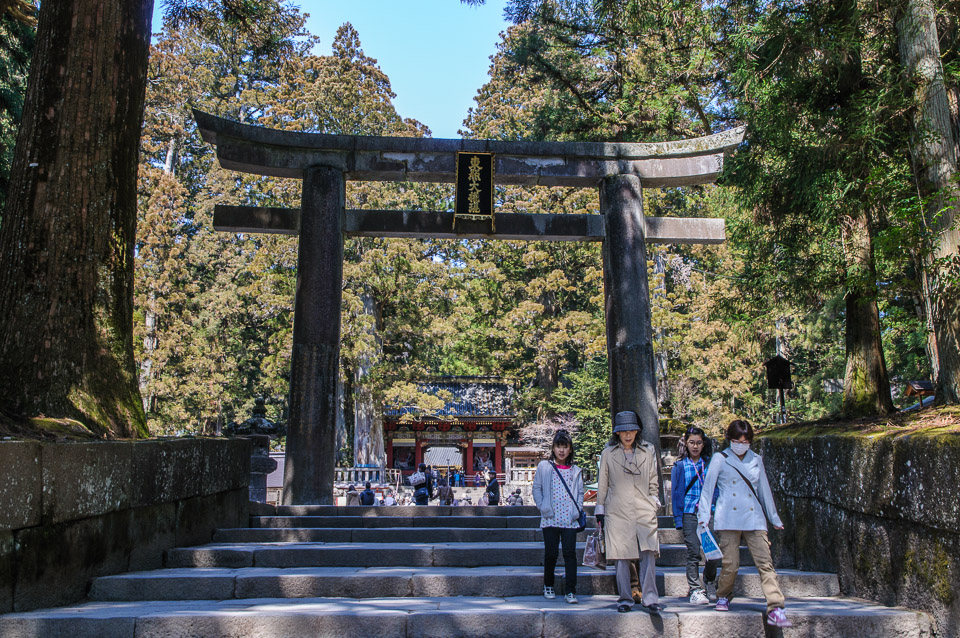 Granite torii (1618) at the entrance to the Tosho-gu Shrine built by Tokugawa Iemitsu as a mausoleum-shrine for his grandfather Ieyasu