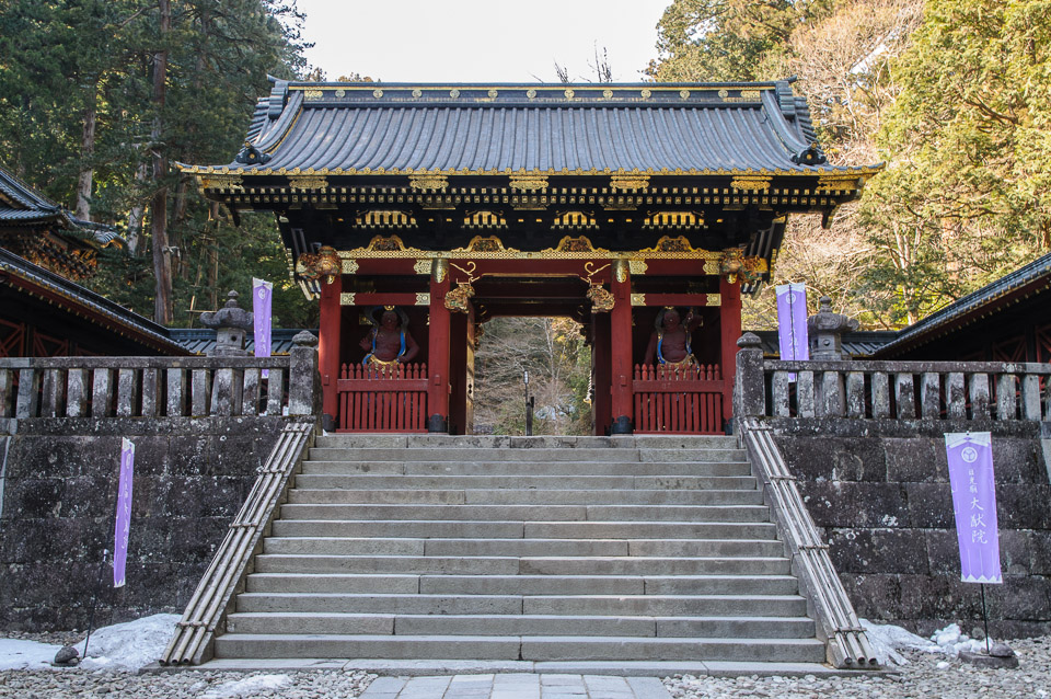 Nio mon (gate) is the main entrance to Taiyuin-byo, a Buddhist Temple and the mausoleum of Ieyasu's grandson, Iemitsu, completed in 1653.