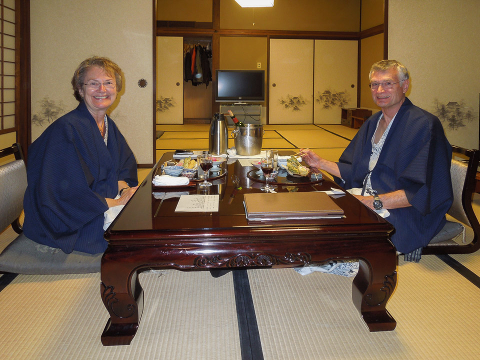 Enjoying our kaiseki dinner at the ryokan