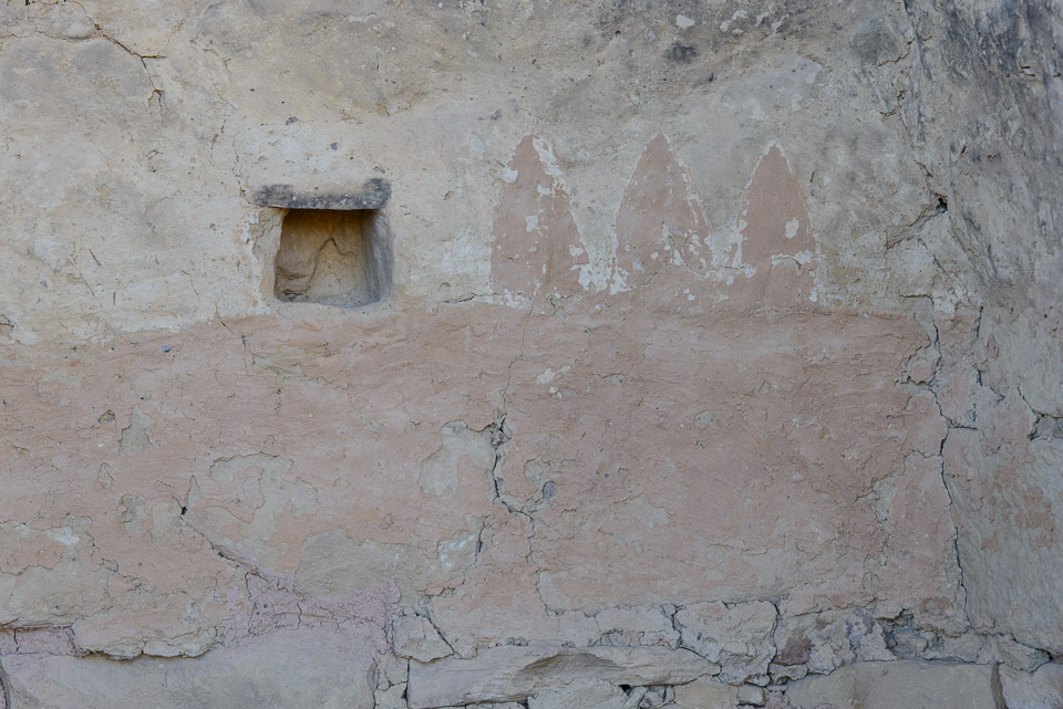 The three-point symbol in this reddish painting was common at Mesa Verde.