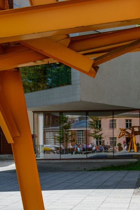 The Turku cow reflected in a library window