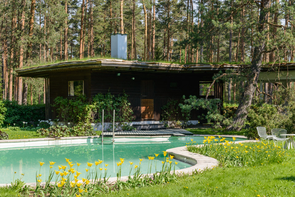 Swimming pool and adjacent log sauna