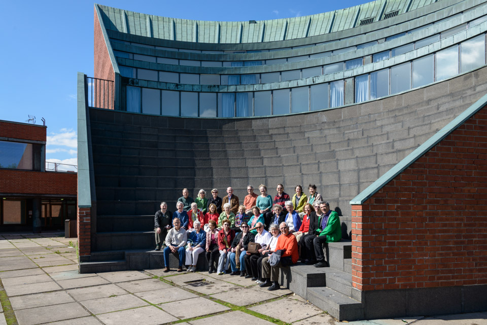 Group photo at the Main Building and Lecture Hall at the Helsinki University of Technology