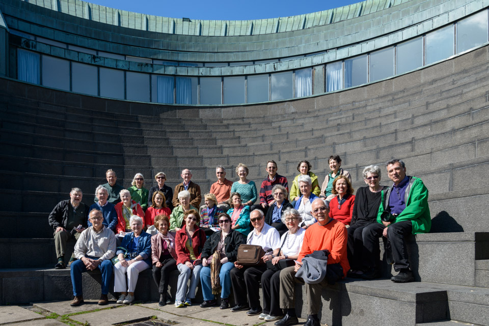 The stepped roof of the lecture hall offers an amphitheater for gatherings such as our group photo.