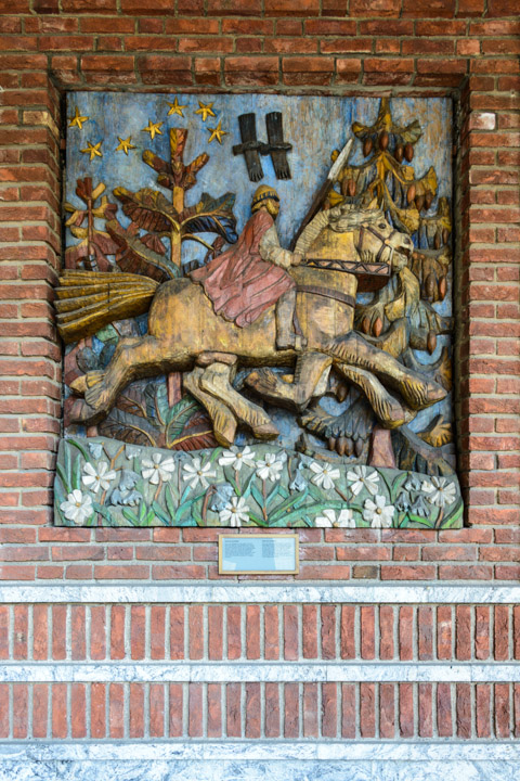A woodcut of Odin on Sleipner, his eight-legged stallion.