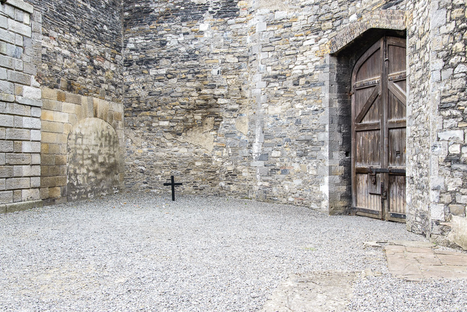 James Connolly, the last to be executed, was shot to death near this cross. He was brought here from a hospital where he was being treated for serious wounds. He could not stand and was placed in a chair to be executed.