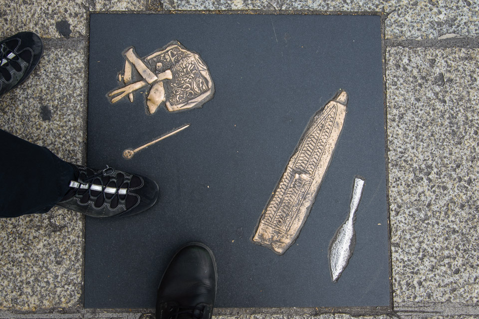 There are a number of these plaques in the sidewalk next to Christ Church Cathedral. The objects represent archaeologically important items.