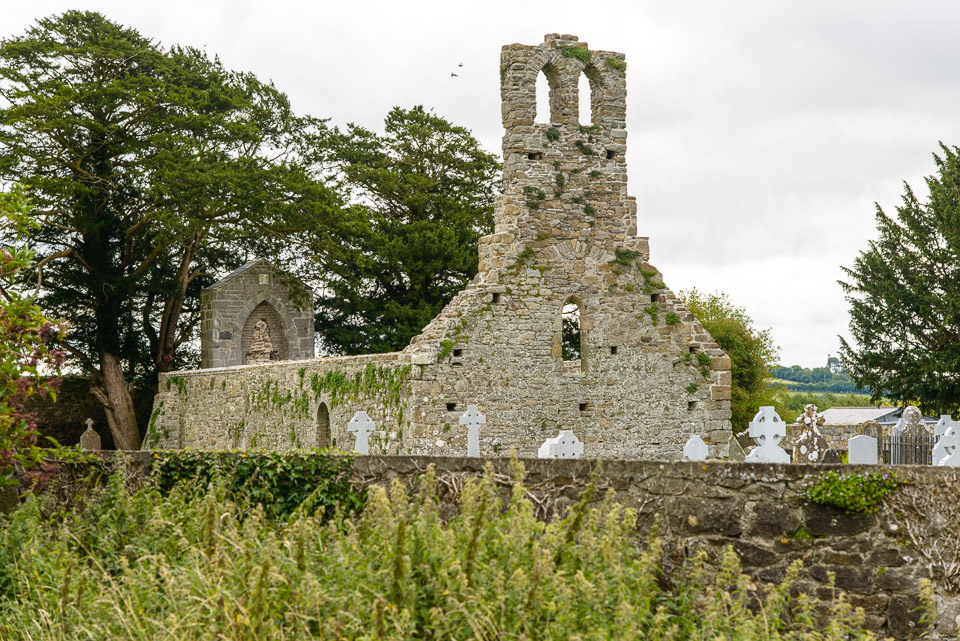 Church ruins and a graveyard on the grounds of the Neterville House