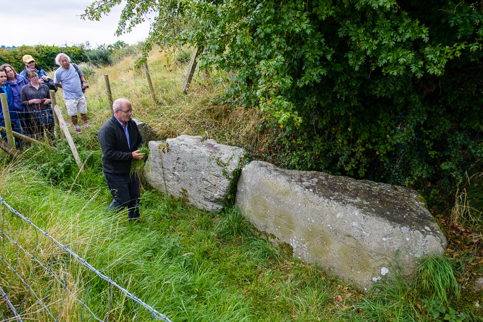 Our tour guide, archaeologist Michael Gibbons, showing us carvings in stones on the periphery of the passage tomb