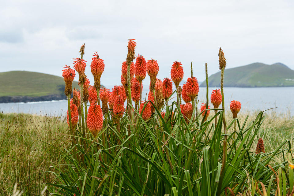 Red Hot Pokers on top of the cliffs near Dunquin pier
